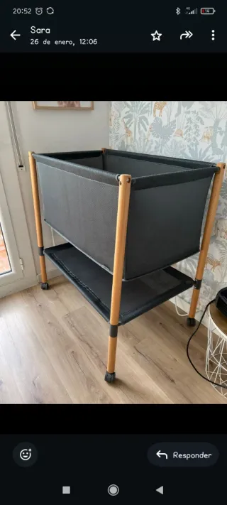 Cuna de bebé con un diseño moderno y funcional, ideal para el descanso del pequeño. Cuenta con una estructura resistente y fácil de mover. Está impecable. - Estructura de madera y tela. - Dos niveles. - Ruedas para facilitar el desplazamiento.