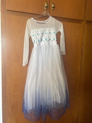 Disfraz inspirado en Elsa de Frozen para niñas. Talla 150cm Tiene un pequeño descosido que hay que coser (ver fotos). Por el resto esta perfecto.