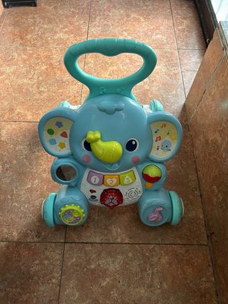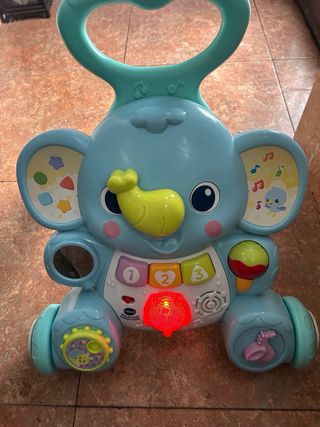 Correpasillos con forma de elefante para bebés. Ideal para los primeros pasos. Como nuevo y con pilas incluidas. - Diseño en color azul. - Incluye botones interactivos y sonidos. - Ruedas para facilitar el movimiento.