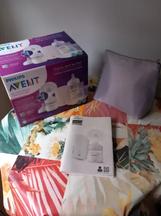 Sacaleches eléctrico Philips Avent, usado 3 semanas, comprado el 31/12/25 por 189€. Incluye : - 2 tallas de copa de silicona (21 y 24 mm) - 14 bolsas de almacenaje leche Regalos : - discos de lactancia : una caja que no esta abierta (Pospart) y otra que esta quasi llena (Philips) - 2 recolectores de calostro Haakaa (uno abierto pero no usado, el otro no esta abierto) - extractor de leche manual Haakaa - 4 pezoneras Medela 24mm