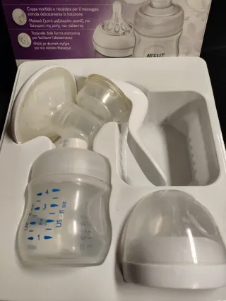 Sacaleches manual Philips Avent modelo Natural. Diseñado para un extracción cómoda y natural. - Incluye tetina anatómica para facilitar la lactancia. - Copa suave para masaje. - Libre de BPA. Le falta un accesorio que no es necesario para su funcionamiento, detalle en última foto