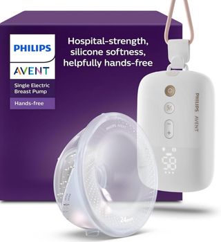 Sacaleches eléctrico Philips Avent, diseñado para ser manos libres y ofrecer comodidad. - Bomba de alta resistencia. - Escudo de silicona SkinSense. - Incluye unidad de motor, clip, taza de recolección, escudo para el pecho de 21/24 mm, inserto de escudo de 19 mm y tarjeta de tallas para pezones. - Incluye biberón de 125 ml / 4 oz y - no incluye 25 bolsas para leche materna de 180 ml / 6 oz.