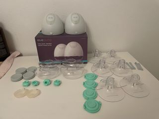 Sacaleches Elvie Pump doble, inalámbrico y manos libres. El sacaleches líder del mercado. Incluye: 4 embudos (2x 24mm y 2x 28mm), dos en muy buen estado y dos con signos de uso, pero totalmente funcionales. Uno de los sacaleches esta en perfectas condiciones, el otro tiene uno de los agarres de plástico suelto, pero no afecta al uso (se ve en las fotos). Precio Nuevo 250€ (uno), 480€ (pack doble) Se entrega con todas las piezas básicas del kit doble, su caja y manual originales. Ideal para lactancia activa, trabajo o extracción discreta. Entrega en Sant Cugat o Barcelona.