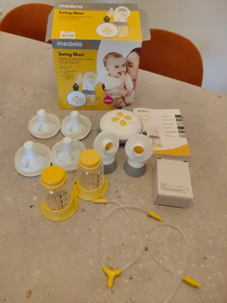 Vendo sacaleches Medela Swing Maxi doble, en buen estado. Incluye dos botellas, dos embudos, base, cable y cargador. Perfecto para facilitar la lactancia materna. - Modelo Swing Maxi. - Doble extracción. - Incluye todos los accesorios que se ven en las fotos.