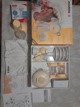 sacaleches Medela modelo 'Solo' convertible en doble. Muy muy poco uso debido al abandono de la lactancia prematuro. me compré el modelo solo(1 solo sacaleches) y para mí mayor comodidad, compré los accesorios a parte (tubo doble, copas ,conectores y sujetador) para convertirlo en doble y poder tener las manos libres y poder sacarme leche de los 2pechos a la vez en el mismo periodo de tiempo. Está todo prácticamente nuevo. cosas sin estrenar. su precio en total ronda en torno a los 220€. por la compra del sacaleches regalo 2 pezoneras de la talla M (20mm) y dos biberones de la misma marca que sirven también como extractores. sujeta