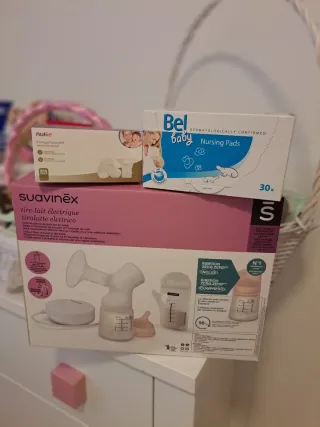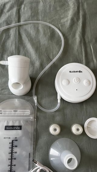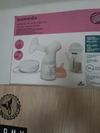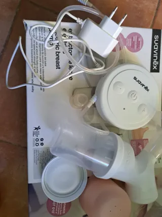 Sacaleches eléctrico de la marca Suavinex, diseñado para facilitar la extracción de leche. - Incluye motor. - Biberón. - Embudo. Va bastante bien.