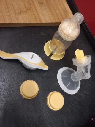 🆕 ¡Nueva a estrenar! Pack de dos productos Medela para la lactancia ▶️ Precio no negociable ▶️ Entrega en mano o envio por Wallapop Incluye: • Medela Harmony Essentials Pack: Set con sacaleches manual Harmony, embudo PersonalFit Flex, bolsas para leche materna y discos absorbentes. Ideal para usar fuera de casa. • Medela colectores de leche materna In-bra: Incluye dos colectores In‑Bra de 30 ml, cómodos, discretos, con forma anatómica y apertura para verter la leche fácilmente.