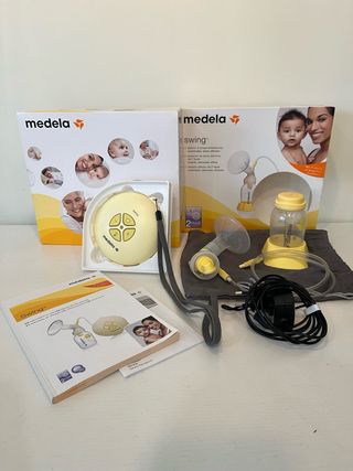 Vendo sacaleches Medela Swing, junto con otros accesorios. Es un equipo muy completo y fácil de usar. Ademas de los componentes de la caja, hay: - 3 biberones más. -Un paquete con 14 bolsas para congelar la leche. -Otra cabeza de válvula y 4 membranas de la válvula. -Tetina Medela calma.
