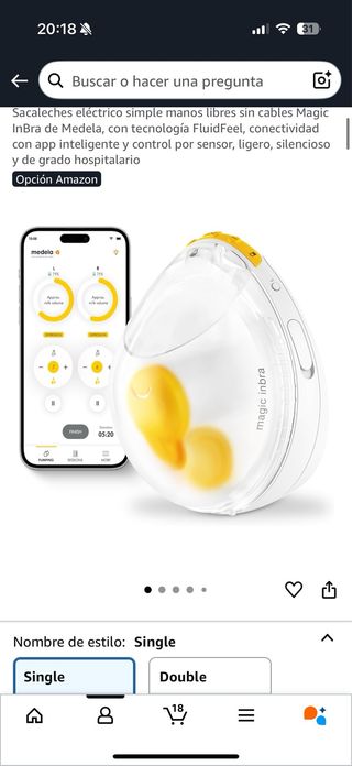 Sacaleches eléctrico Medela Magic Inbra, diseñado para ser manos libres y sin cables. USADO 2 VECES porque mi situación ha cambiado y ya no lo necesito. Ha llegado el día 8 de septiembre, y solo ha sido usado ese mismo día y el siguiente; o sea que tiene aún los 3 años de garantía. se entrega con la factura Es muy cómodo y maravilloso - Tecnología FluidFeel. - Conectividad con app inteligente. - Control por sensor. - Ligero y silencioso. - Apto para uso hospitalario. En Amazon vale 269,99€, que es lo que me valió