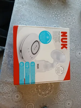 Sacaleches eléctrico de la marca NUK, diseñado para la maternidad y la lactancia. Con indicadores digitales luminosos, diseño bonito comprado en 2024, modelo actual. - Diseño ergonómico y compacto. - Pantalla digital con indicadores de modos y niveles (es muy fácil de usar) - Botones de control de intensidad y modos. Cable para cargar por usb con adaptador de pared (sirve el del móvil por eso no venía incluido en la caja) Sin caja porque era muy aparatosa Se entrega esterilizado