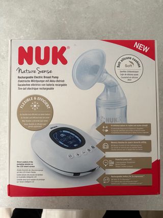 Sacaleches eléctrico Nuk Nature Sense, a estrenar. Diseñado para una extracción cómoda y eficiente. - Bomba potente con 330 niveles de succión. - 4-4 ritmos individuales para la estimulación y extracción. - Función de memoria para guardar tus ajustes. - Batería recargable para hasta 3 extracciones. - Pantalla LCD inteligente para control directo. - Nuevo a estrenar con tique de compra en farmacia