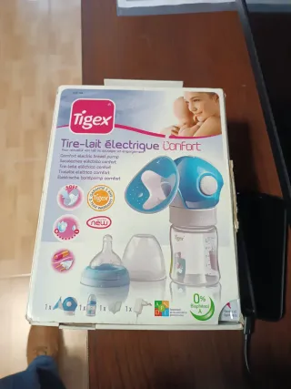 Sacaleches eléctrico Tigex en perfecto estado, casi sin uso. - Diseño ergonómico y cómodo. - Compatible con tetinas y biberones Tigex de base ancha. - Fabricado en Francia.