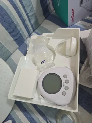 Sacaleches eléctrico. Muy recomendado por matronas. 9 niveles de succión. Desprecintado para leer las instrucciones, pero finalmente no se necesitó. Totalmente nuevo, sin estrenar. Tal como viene de fábrica en su caja.