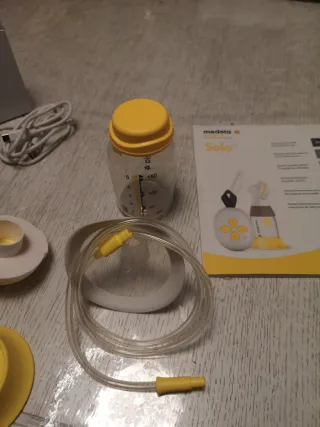 Sacaleches eléctrico Medela Solo, compacto y fácil de usar. Está impecable, con todas las piezas y la caja original. Solo se usó durante unos 2 meses hasta que pasamos al biberón. Lo vendo al 50% de lo que nos costó. - Diseño ligero y portátil. - Componentes sencillos para una limpieza rápida. - Carga rápida para mayor comodidad.