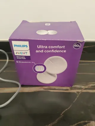 Sacaleches eléctrico de la marca Elvie. Regalo caja discos lactancia. - Diseño portátil y discreto. - Fácil de usar y limpiar. - Caja original. - En perfecto estado.
