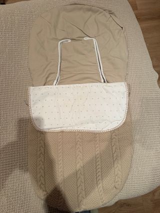 Conjunto de saco y capota. Saco de invierno polipiel beige con interior en suave y caliente polar gris. Capota a conjunto también en polipiel. Diseño elegante y funcional. Prácticamente nueva