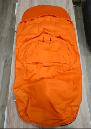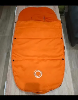 Saco de invierno en color naranja, ideal para mantener abrigado al bebé. En muy buen estado. - Diseño acolchado. - Forro interior polar. - Logo de la marca Bugaboo.