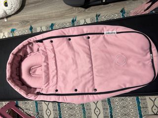 Saco para capazo de la marca Bugaboo en color rosa. Ideal para mantener al bebé abrigado y cómodo. - Diseño acolchado. - Cierre con cremallera. - Detalle de logo circular.