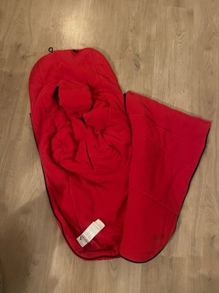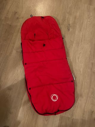 Saco de invierno para cochecito Bugaboo en color rojo. Mantiene al bebé abrigado y cómodo. - Diseño acolchado. - Forrado de polar por la parte interior. - Cremalleras laterales - botones laterales para doblar - Logo de la marca visible.