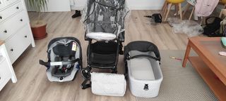 Carro completo, sillas, capazos y hamacas. Plástico de lluvia, portabotellas. Regalo dos sacos de invierno. Todos los accesorios. Cajas originales