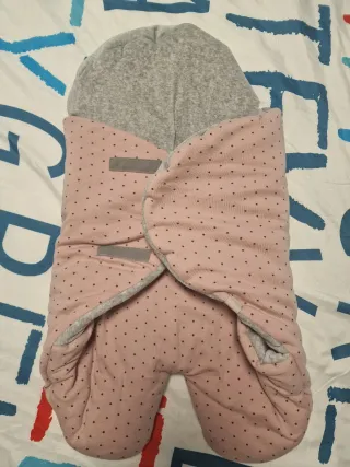 Saco para carro, para cuando no van en silla, se abre y se transforma en un edredón para la cuna. Marca jané
