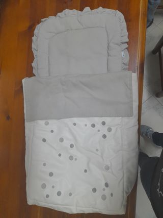 Saco para capazo de bebé, en tela de piqué acolchado, 3 en 1 se puede separar la parte de arriba quedaría como colcha y la parte de abajo quedaría como colchoneta para la silla, si se pone junto quedaria saco para capazo