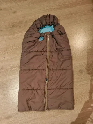 Saco cubrepiés universal (de la marca Cybex, Snogga 2) compatible con todos los cochecitos y sistemas de arnés para bebés. Es TOG4 protege contra el viento y la intemperie a temperaturas de hasta -10 °C. Es compacto y ligero (400 gr), incluye una bolsa para transportarlo fácilmente, tiene capucha ajustable y dos cremalleras (una en la parte del cubrepiés y otra en medio del saco al bebé fácilmente).