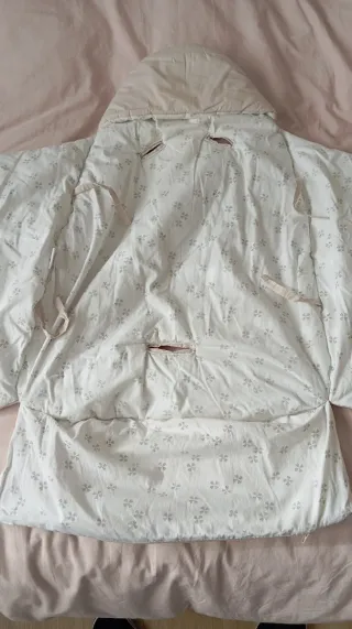 Saco para silla de paseo para bebé, prácticamente nuevo. - Impermeable. - Color beige. - Con capucha. - Muy suave y acolchado.