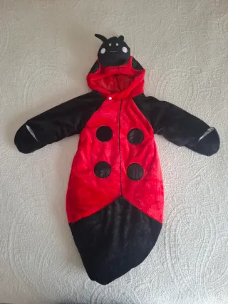 Saco para bebé con diseño de mariquita. - Capucha con detalles de mariquita. - Cierre frontal. - Diseño de mariquita en rojo y negro. Una sola puesta