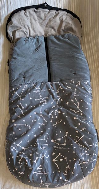 Saco polar para silla de paseo Maclaren, ideal para abrigar a tu bebé durante los paseos. Está en muy buen estado y es muy suavecito. - Perfecto para sillas de paseo Maclaren. - Diseño con ciudades impresas. - Tejido polar, cálido y confortable. - Fácil de limpiar.