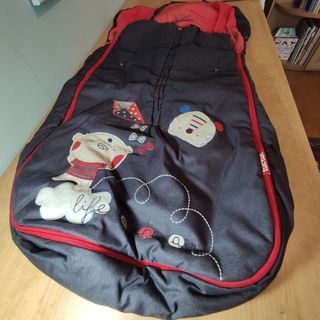 Saco para silla de paseo para bebé, de la marca Rocking Baby 2. Está prácticamente nuevo, sin apenas uso. - Color negro con interior gris claro. - Diseño acolchado y confortable. - Cremallera para facilitar su uso.