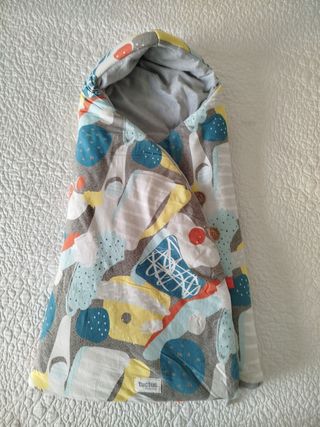 Saco para silla de paseo o maxi cosi de la marca Tuc Tuc. Ideal para mantener al bebé abrigado. - Diseño con estampado divertido. - Tejido suave y confortable. - Color azul y multicolor.