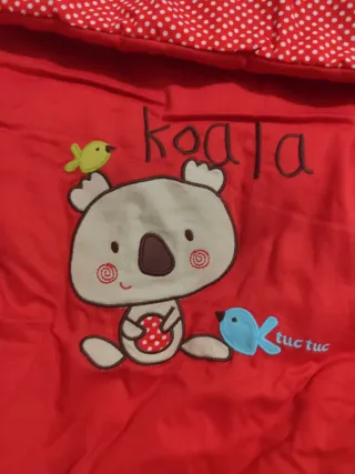 Saco para silla de bebé con un adorable diseño de koala. Perfecto para mantener a tu pequeño abrigado y cómodo. - Dibujo bordado de koala con pajaritos. - Color rojo vibrante.