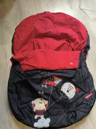 Saco de la marca Tuc Tuc para silla de paseo. Es calentito pero como para 15 grados, no para el frio invernal. Tiene un plástico protector para los zapatos de los niños.