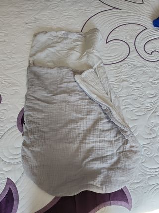 Saco de dormir o arrullo para bebé de Zara Home. Está sin estrenar y es perfecto para mantener a tu pequeño calentito y cómodo. - Diseño con estampado de estrellas. - Color gris claro. - Tejido suave y agradable al tacto. Tengo a juego también 3 cojincitos, que se pueden colgar (mirar perfil)