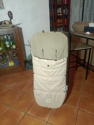 Saco para silla de paseo Bugaboo en color beige, en perfecto estado. - Exterior de tejido resistente. - Interior suave y acolchado. - Diseño universal compatible con la mayoría de sillas. - Logo de la marca visible.