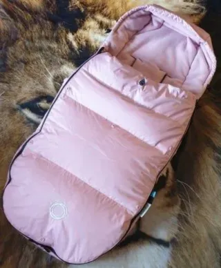 Saco original Bugaboo para silla de paseo en color rosa Soft Pink, compatible con la mayoría de carritos Bugaboo (Camaleon, Bee, Fox, Donkey, etc.). • Interior muy calentito y suave, ideal para invierno y bajas temperaturas. • En buen estado general, con signos normales de uso pero sin rotos importantes; siempre guardado en casa sin humedad (ver fotos). • Se puede lavar a máquina siguiendo las indicaciones de la etiqueta.