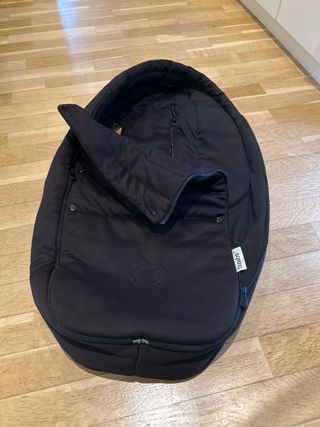 Saco o capazo de la marca Bugaboo, modelo Bee, en color negro. Ideal para mantener al bebé abrigado y cómodo. - Tejido acolchado. - Capucha integrada. - Cierre con cremallera.