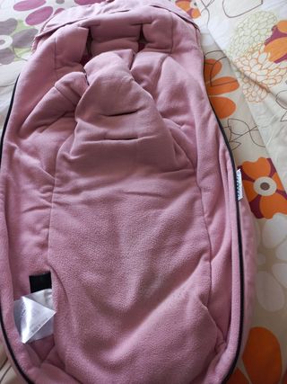 Capazo blando marca Bugaboo Tono rosa claro Grosor de entretiempo (ver textura en las fotos). No es plumas. Es específico del Bugaboo Bee, pero yo lo he usado en otros carros a modo de saco y de capazo. Tiene el tirador de una de las cremalleras roto, pero la cremallera funciona perfectamente. También tiene algunos enganchones. Ver foto de los detalles. prefiero envíos