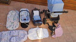 Se incluye la Silla de paseo, con la funda gris, los adaptadores para el capazo, el propio capazo con colchón incluido. También vendemos el saco de paseo en color rosa, capota invierno rosa y capota verano beige, todo por el mismo precio. Plástico para lluvia y sombrilla rosa, muy útil para el capazo. GRAN OPORTUNIDAD