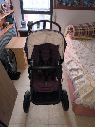 Del 2018. Muy bien cuidado. Capazo en perfecto estado, capota rosa original y se regala la capota ventilada roja también original. Chasis cambiado por la garantía, frenos y ruedas en perfecto estado. Siempre usado con colchoneta o saco así que textiles negros intactos. Protector para la lluvia incluido. Tengo los adaptadores para la silla del coche (maxicosi) isize, muy útil. Se puede ver sin compromiso. Madrid. No hago envío