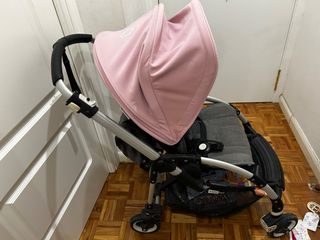 Se vende silla y capazo Bugaboo Bee 5. Todo original y en buen estado. - Capota de color rosa resistente al agua y a los rayos uva. - Silla con funda gris. - Capazo color gris - Plástico para la lluvia - Saco invierno - Bolso organizador (una de las cremalleras se traba)