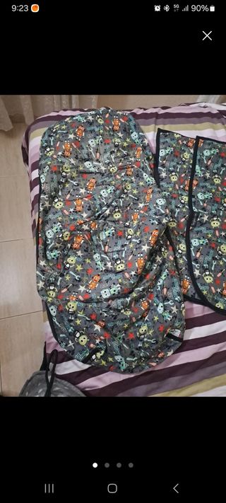 Funda saquito de divertidos robots para cochecito silla bebé marca Teoyleo. Es como el de la foto pero de robots.Tiene la versión invierno y la versión verano, se ajustan mediante cremallera. Como nuevo. Compatible con Bugaboo camaleón. Precio original 117euros.