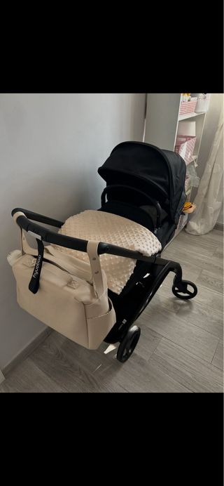 Está como nuevo. Usado con un solo bebé. Color gris oscuro y beig. Incluyo colchoneta de verano de marca Bugabbo. Burbuja para la lluvia. Saco de primavera en beig marca Pasito a Pasito.