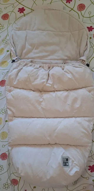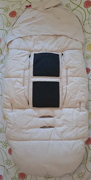 IMPORTANTE: el precio es porque tiene defectos: - Unas pequeñas manchas que no se quitan en la parte delantera (salen en foto). - En la parte de atras 4 agujeros que le hice para sujetarlo a la silla bugaboo bee, (salen en foto) Color Beige con motas blancas. Diseñado para bebés desde el nacimiento hasta los 2-3 años. Mantiene el calor y protege del viento, la lluvia y la nieve. Cuenta con una cobertura de protección repelente al agua anti-suciedad en el interior del área de los pies, por lo que no tendrás que preocuparte de que los zapatos sucios toquen el forro. (Manoplas a juego por 15€ nuevas)