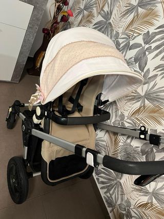 Silla de paseo Bugaboo Camaleón 3 en color beige. Se regala capota a juego de saco para capazo - Capazo y silla. - Capota extensible. - Manillar regulable en altura. - Ruedas todoterreno 180€