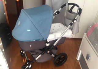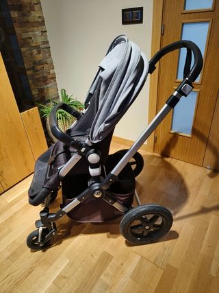 Bugaboo en buen estado, con patinete original, capota de repuesto, tres sacos, burbuja para lluvia, bolso, silla y capazo. Regalo Babybjörn.