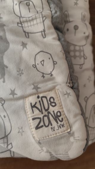 Saco de bebé universal para grupo 0 de la marca Kids Zone by Jane. Está impecable, como nuevo. - Se adapta a la mayoría de sillas de coche grupo 0. - Con capucha y aperturas para los arneses. - Diseño de estrellas en tonos grises y beige. - Tejido suave y agradable al tacto. - Exterior de 100% algodón - Interior térmico polar de tacto suave