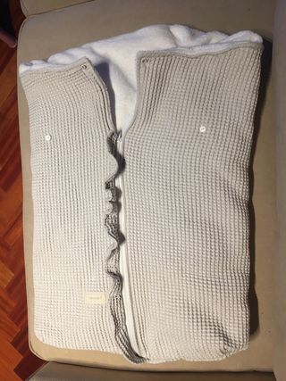 Saco arrullo universal para capazo de la marca Jané, modelo Mims. Color gris. - Tejido exterior texturizado. - Interior suave y confortable. - Cierre con botones de madera. - Detalle de pompón en la capucha. Se convierte en arrullo o manta edredón para la cuna del bebé. Muy calentito por su acolchado interior. Confeccionado de suave tejido algodón para conseguir un tacto muy agradable. Tiene unas aperturas para poder pasar los arneses. Medida de forma de saco 43x88. Puedo enviar fotos si alguien tiene interés.