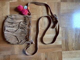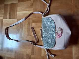 Lote de dos bolsos de niña en muy buen estado. Poco uso. Uno con purpurina y cierre tipo saco de Zara y otro de serraje con borlas.